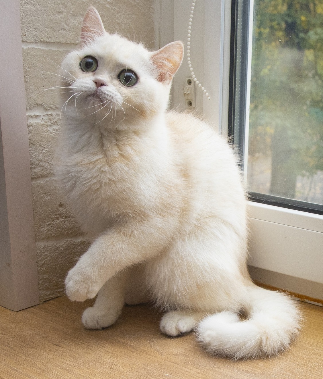 Баловень. Очень ласковый котик. окрас - серебристая шиншилла с зелеными глазами. Умненький.